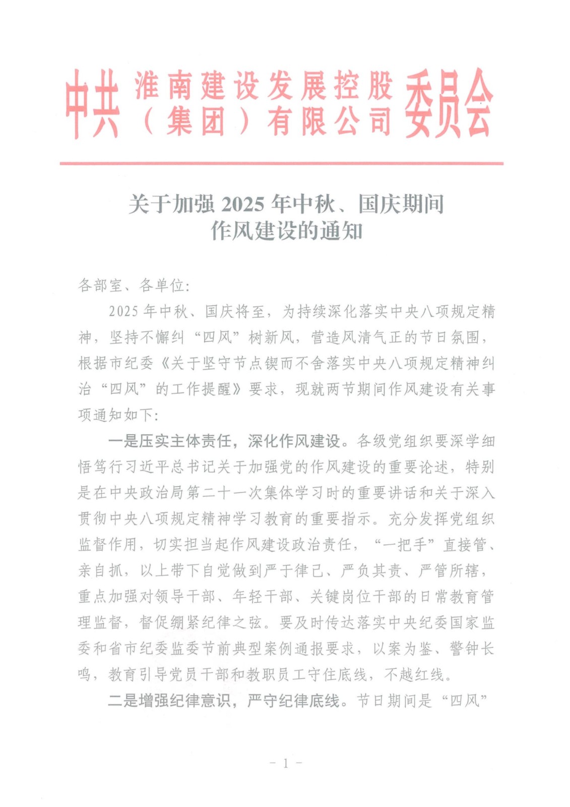 關(guān)于加強(qiáng)2025年中秋、國(guó)慶期間 作風(fēng)建設(shè)的通知